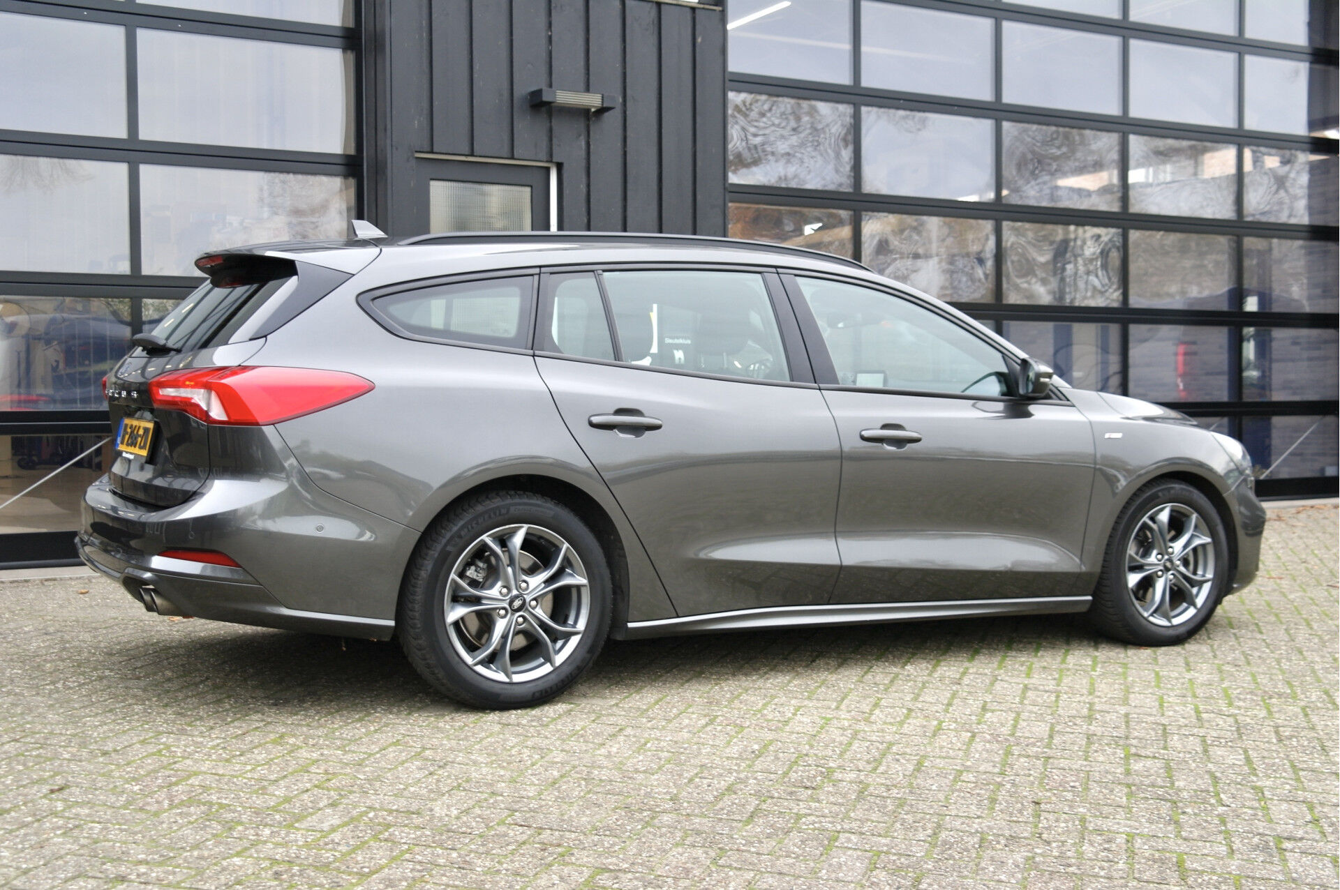 Nederlands geleverde Ford Focus Wagon 2.0 150 PK ST Line Business voorzien van de volgende opties: cruise control, carplay, metallic lak, keyless start & entry, achteruitrijcamera, 17'' lichtmetalen velgen, parkeersensoren voor en achter, navigatie, ST-line, en een elektrisch wegklapbare trekhaak met een trekgewicht van 1.800 KG.